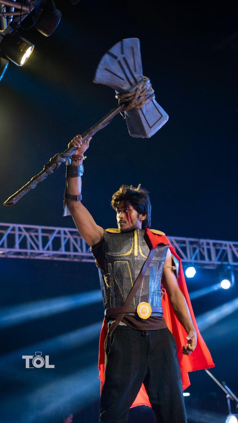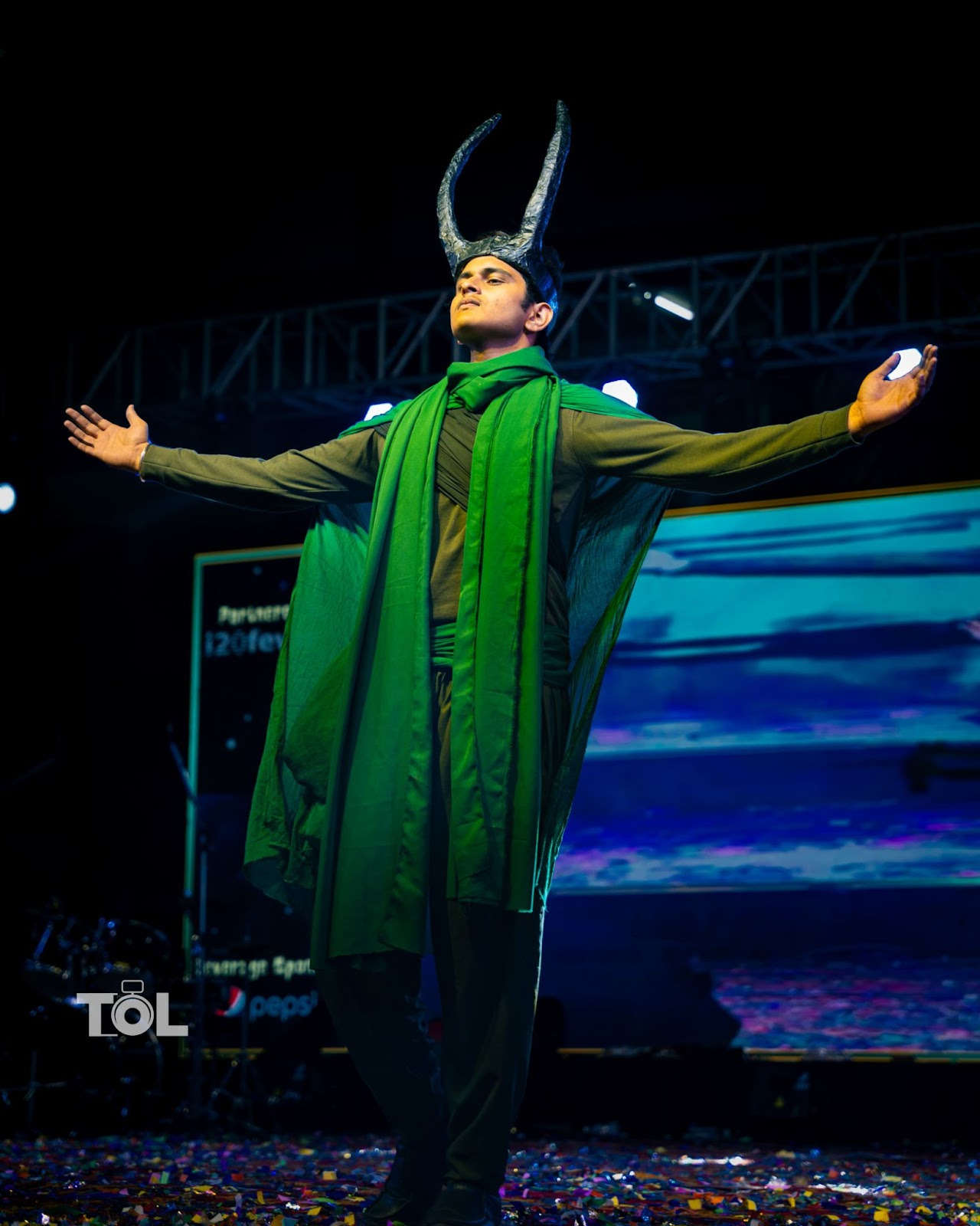 This look by Yasho Depicts Loki, the god of stories from the The marvel universe , precisely the scene where loki takes the timelines from the temporal loom and transforms them into the “X” tree and what did it take for this look? The horns were made of corrugated sheets and cardboard and the cape, scarf and belt is of course an old chunni